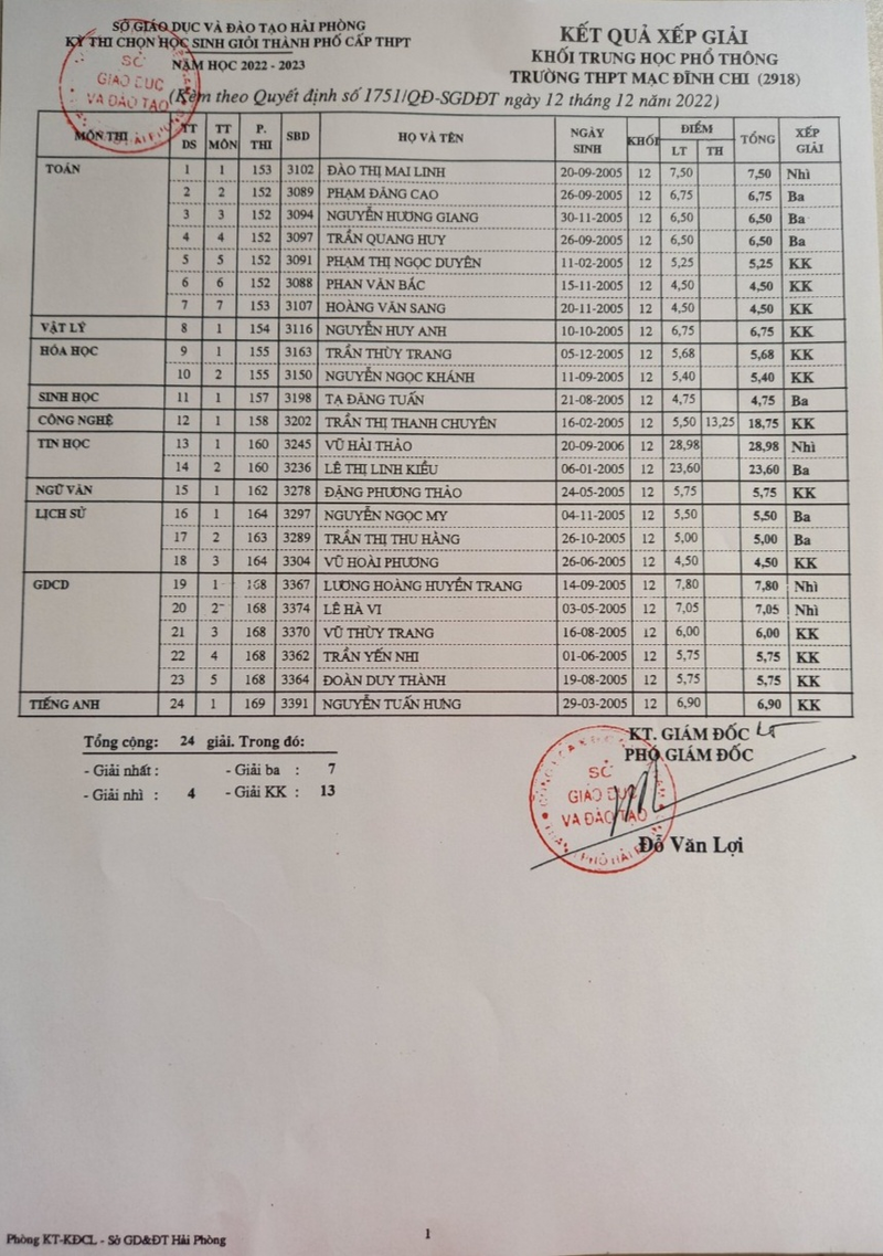 🏅🏅🏅 Trải qua một hành trình dài nỗ lực ôn tập và vượt lên chính mình, đội tuyển đã đạt được những kết quả rất đáng khích lệ với 24 giải trong đó có 04 giải nhì, 07 giải ba và 13 giải khuyến khích.