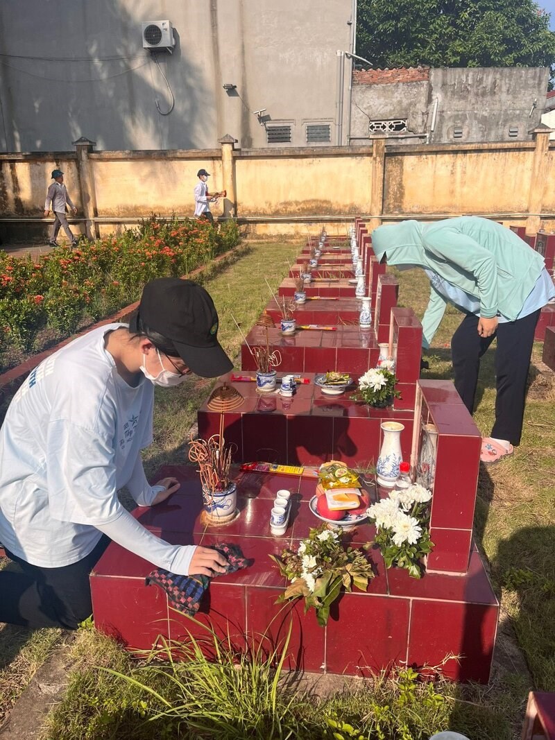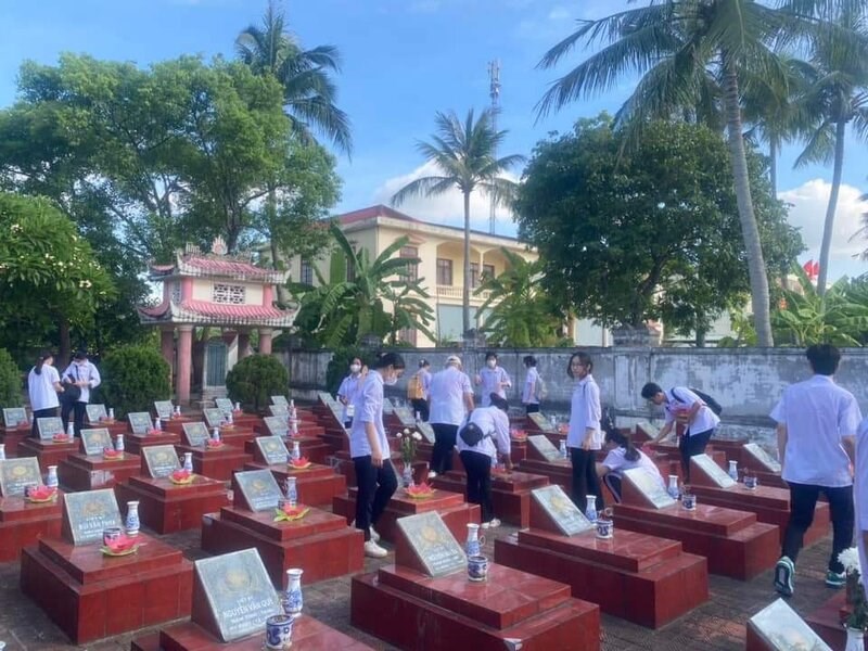 ✅️ Các em cũng đã tích cực hỗ trợ các phường trong việc dọn dẹp, chỉnh trang nghĩa trang liệt sỹ, chuẩn bị cho Lễ thắp nến tri ân.