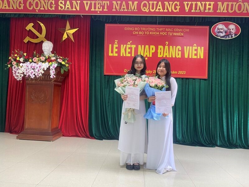 🇻🇳🇻🇳Sáng 26/5/2023 Đảng bộ Trường THPT Mạc Đĩnh Chi tổ chức lễ kết nạp đảng viên đối với 2 đoàn viên ưu tú của nhà trường thuộc 2 Chi bộ: Khoa học tự nhiên và Khoa học xã hội